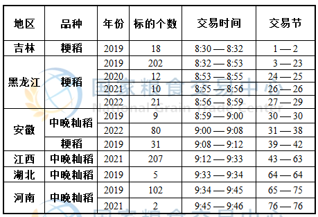 最低收购价稻谷于8:30开市交易,请提前登录“国家政策性粮油竞价销售”交易专场并关注标的,最新预估竞价交易时间如下: