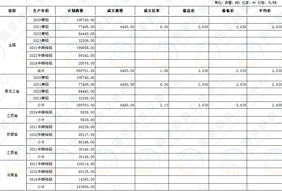 2025年9月30日最低收购价稻谷竞价销售交易结果